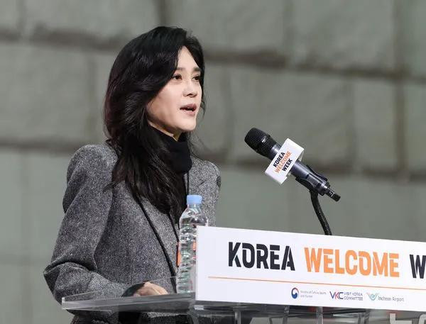 10月23日,李富真最新露面,她在仁川国际机场参加2025韩国访问欢迎周开幕式,就是欢迎游客去韩国旅游,而李富真是韩国访问年委员会委员长,她发表了开幕词。